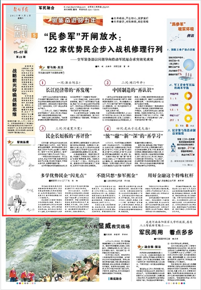 以长三角地区为例,各地出台多项政策措施,建立了一批军民融合产业基地,推动了近1000家企业参与军品研制生产;有的民企以世界航空科技前沿为起点,已发展成为国内某一专业领域的“单打冠军”或“开路先锋”。