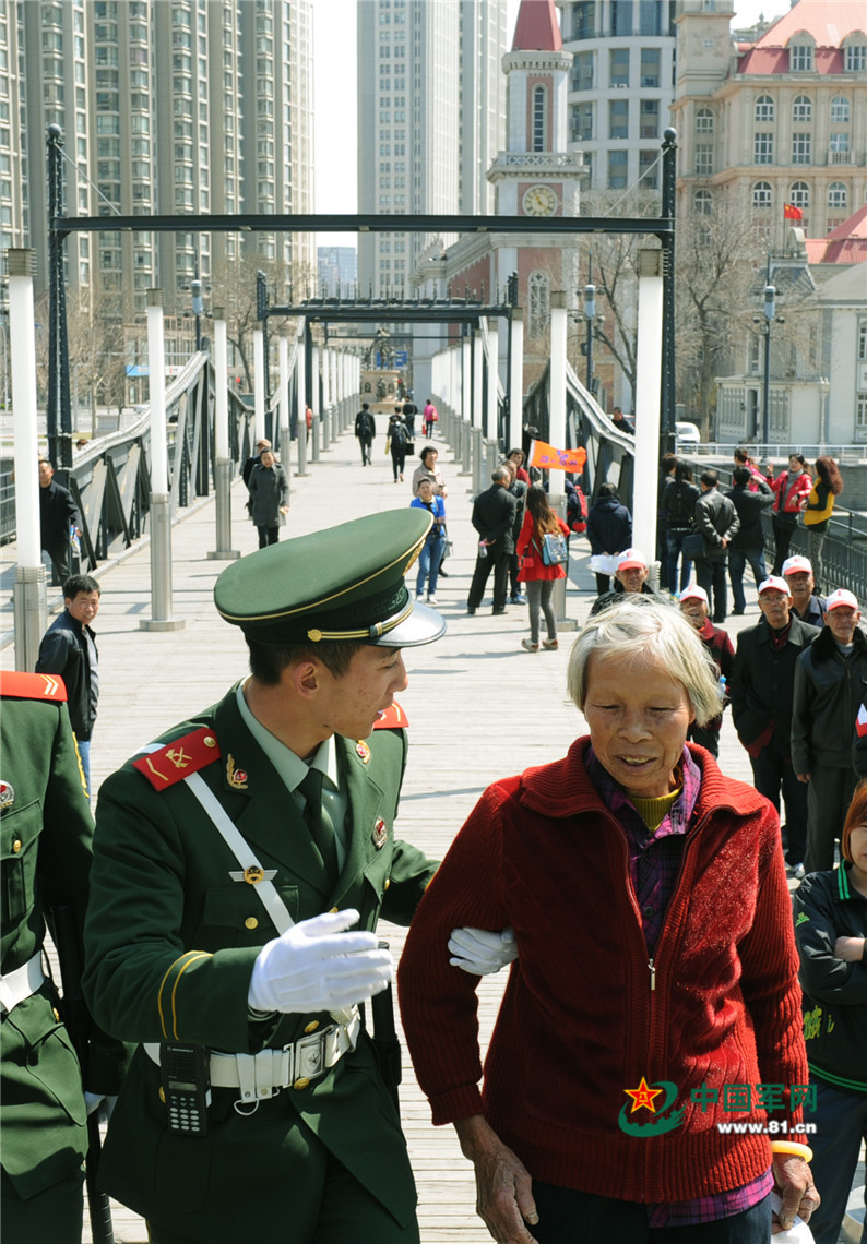 武警天津总队担负巡逻任务的官兵帮助遇到困难群众。江传景 摄