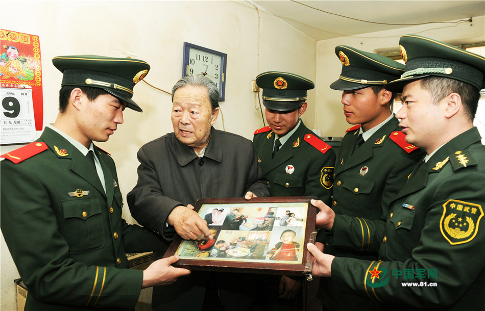2013年4月9日,武警天津总队某支队新战士看望慰问驻地孤寡老人赵大爷时,赵大爷向大家深情讲述了20年来官兵照顾帮助自己的感人故事。江传景 摄