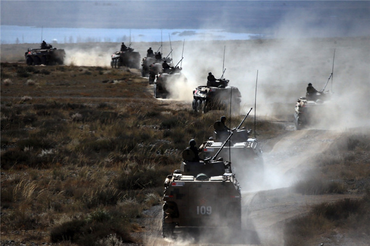 “和平使命-2016”联合反恐军事演习在吉尔吉斯斯坦巴雷克奇市举行。这是我军参演部队组织快速集结(2016年9月18日摄)。新华社发(王宁 摄)