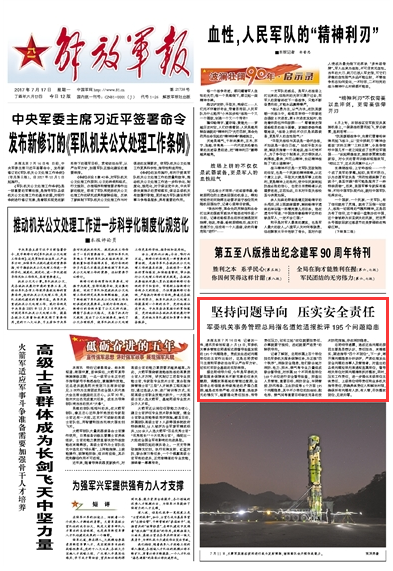 7月13日,军委机关事务管理总局通报近期督导检查发现的195个问题隐患,责成发生违纪问题单位的主官作出检讨。请关注今日《解放军报》的报道——