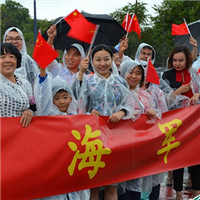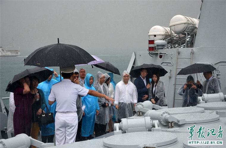 华人华侨冒着大雨在长春舰参观。记者 严贵旺 摄