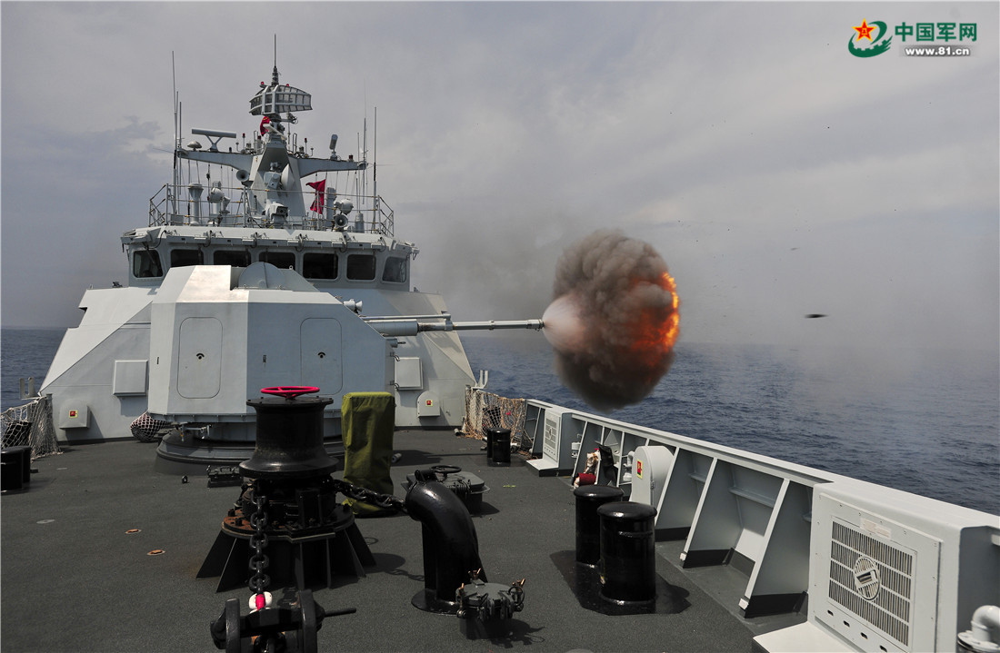 在演习中,惠州舰主炮射击雷霆万钧。锁柯柯摄