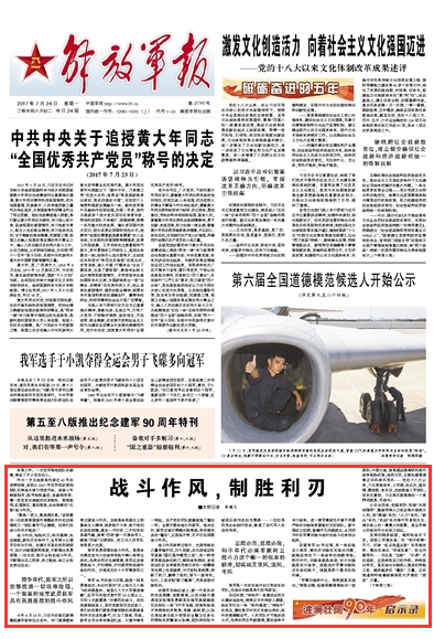 战斗作风,制胜利刃;和平盾牌,热血铸就。新的历史条件下,全军将士以强军目标为引领,在真打实备的浓烈硝烟中,加大训练强度和难度,不断强化英勇顽强、一往无前、敢打必胜的战斗作风,不断强化召之即来、来之能战、战之必胜的责任担当!请关注今日《解放军报》的报道——