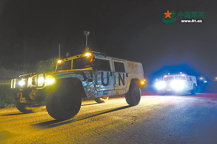 当地时间8月19日,中国第3批赴南苏丹维和步兵营官兵前往朱巴城区执行夜间巡逻任务。解放军报记者 罗铮 摄