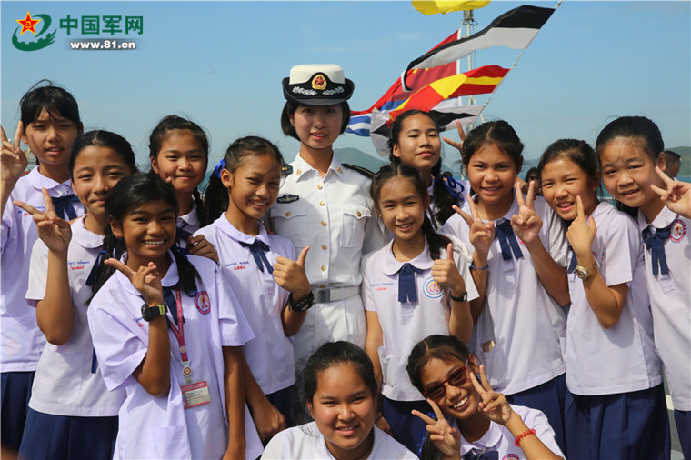 泰国罗勇光华学校学生与出访女学员合影。中国军网记者 乔梦 摄