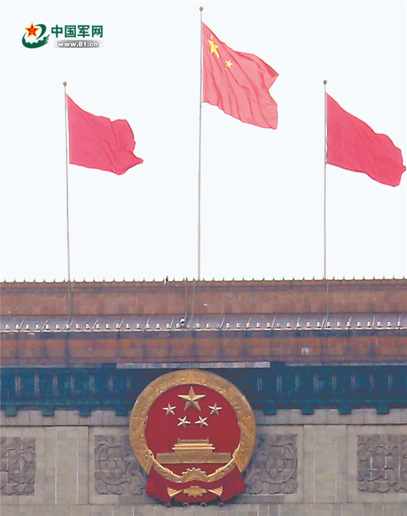国旗国徽相映红。解放军报记者 李三红摄
