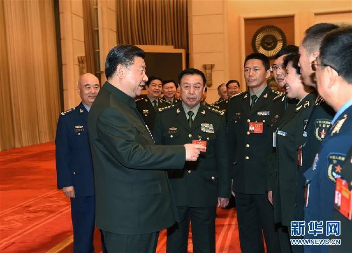 习近平出席解放军代表团全体会议并发表重要讲话。新华社记者 李刚 摄