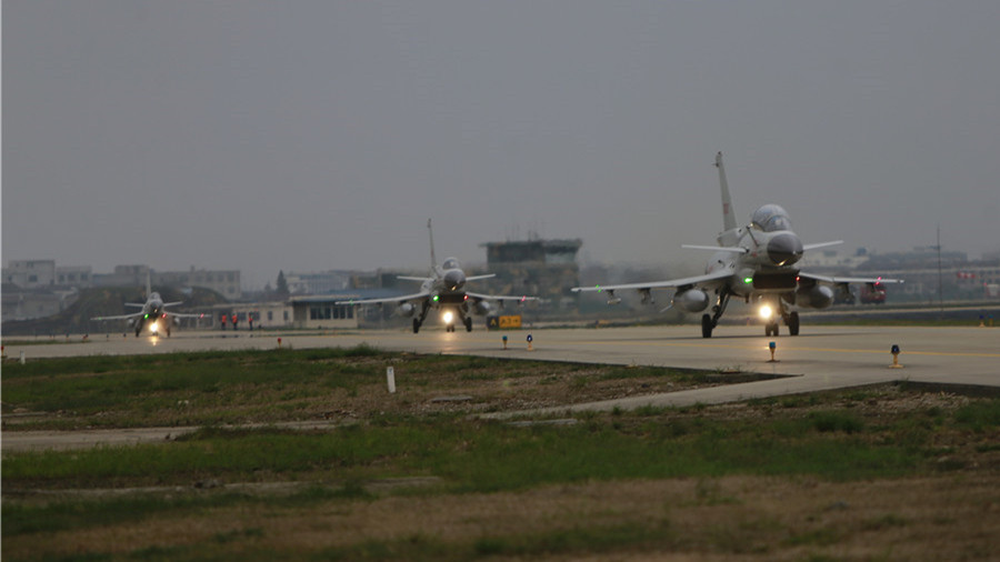 激情满怀迎盛会,砥砺奋进续华章。10月18日上午,中国共产党第十九次全国代表大会在人民大会堂开幕。东海舰队海军航空兵某旅演兵场上战机轰鸣声响彻苍穹,一架架两型三代机列阵在起飞线上待命出击。该部官兵心无旁骛展开练兵备战,紧盯短板弱项在复杂气象条件下专攻精练,以备战打仗姿态在战位忠诚履职,在万里海空书写忠诚担当,将党的十九大精神转化为矢志强军的热情。