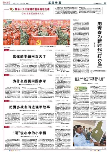 看到后台各个连队传过来的学习十九大待审稿件和学习心得体会,我再次感到肩上沉甸甸的责任。我要充好电,为战友及时更新资讯,提供学习资料,维护好这个专题网页,让它成为学习党的十九大精神的大平台、大课堂,一直火爆下去。