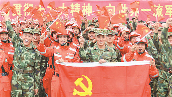 武警重庆总队官兵任务一线点赞十九大。曹 峰摄