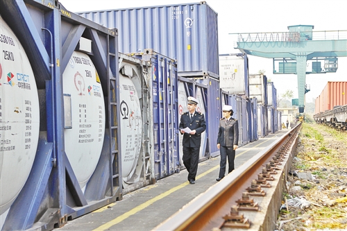 从集装箱揽货、物流运输、出口拼箱、通关报检、加装关锁、吊装上车直到班列的顺利“远征”,一个个看似简单的步骤,背后是跨区域、跨部门、跨行业的统筹协调,分工协作。