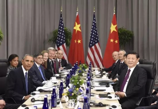 2016年3月31日,国家主席习近平在华盛顿会议中心会见美国总统奥巴马。