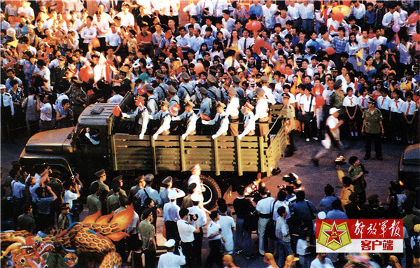黄合明回忆起当时的场景:从深圳福田到口岸再到香港沿路,街道两边全是挥着手臂、旗帜的市民,我们就在夹道中匀速开进。当时大雨滂沱,为了和市民打招呼,就一直开着车窗。大雨吹进来,我们浑身都湿透了……