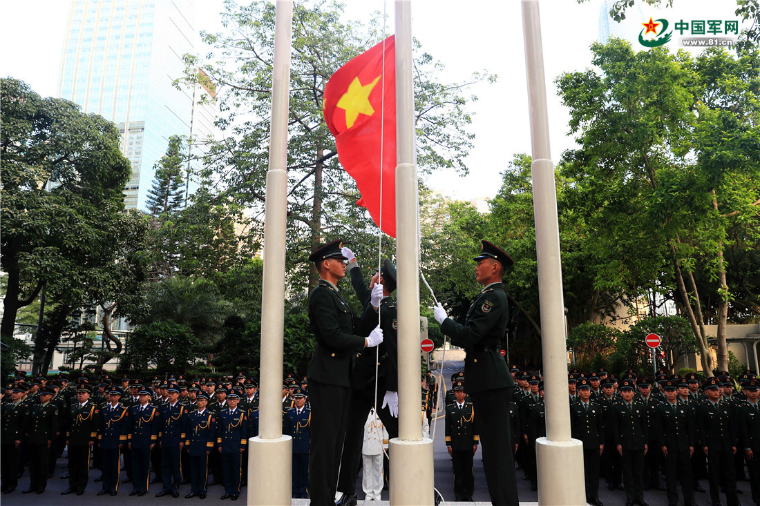 2017年7月1日,驻香港部队举行升国旗仪式庆祝香港回归祖国20周年。