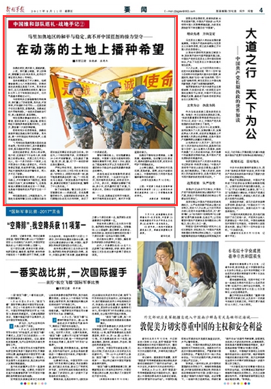 可以说,加奥地区的和平与稳定,离不开维和官兵的坚守,离不开中国蓝盔的接力。