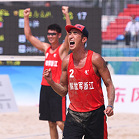 当日,在天津进行的第十三届全运会男子沙滩排球小组赛A组的比赛中,解放军、浙江联队组合哈力克江/包健以2比0战胜香港队组合王沛林/刘梓浩。