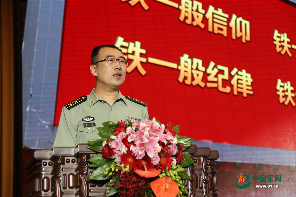 陆军第74集团军某旅政治工作部主任霍锐作报告。 中国军网记者