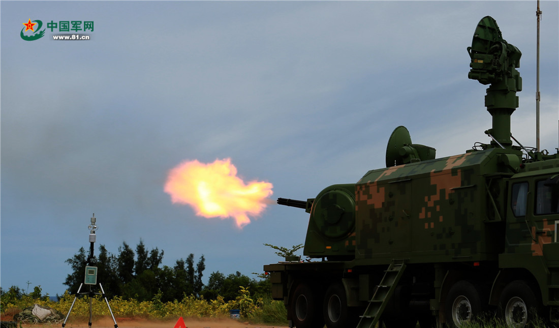 防空高炮车对空射击。骆以汉 摄