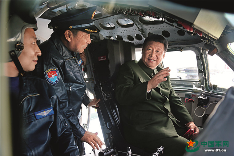 2015年2月16日,中共中央总书记、国家主席、中央军委主席习近平视察看望驻西安部队,代表党中央、中央军委向中国人民解放军全体指战员、全体武警官兵和民兵预备役人员致以新春祝福。这是习主席在轰炸航空兵某团登上战机,坐进驾驶舱,了解装备性能,体验操作使用。解放军报记者 周朝荣 摄