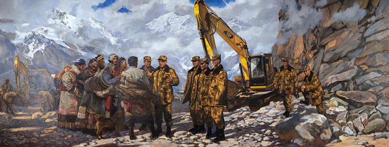 《高原守护神—郭毅力》-孙立新 300cm×800cm 油画 2017