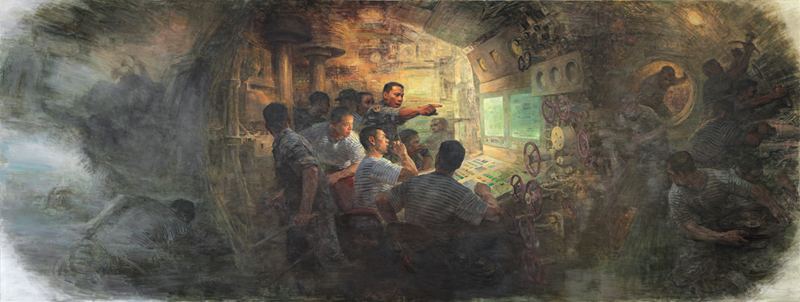 《英雄壮歌—海军372潜艇》-秦文清 王 睿 300cm×800cm 油画 2017