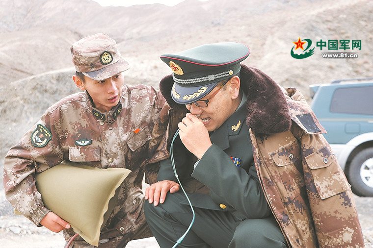 宣讲组成员胡建刚产生高原反应,通过吸氧缓解症状坚持宣讲。陈金财 摄