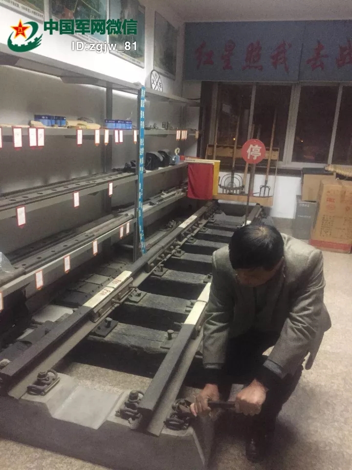 他说,为了修建这条铁路,他花了整整10个月的时间,从铁路部门找来了废弃的铁轨、枕木和各种零部件,亲自动手安装了这条铁轨,布置了办公室。别小看这短短5米,轨面看着都一样,其实有4种不同的钢轨型号,陈列的那些零部件也件件都有讲究。
