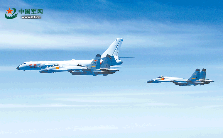 4月26日,空军轰-6K等多型战机执行“绕岛巡航”任务。吴岳鹏摄