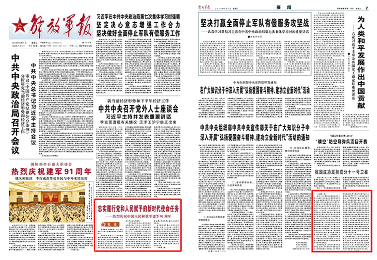 从进行艰苦卓绝的武装革命斗争,到参加社会主义革命和建设,再到投身改革开放、进行新的伟大革命,党和人民在不同时期赋予的神圣使命,像催征的号角,激励三军将士跨过万水千山,战胜千难万险;如铿锵的战鼓,鼓舞全军官兵勇往直前,从胜利走向胜利。请关注今日《解放军报》的报道——