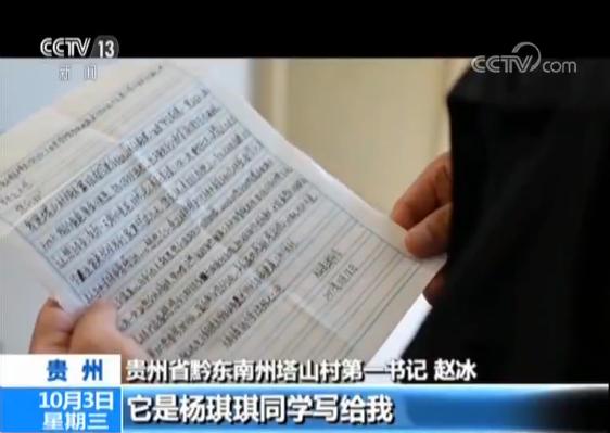 被评为脱贫攻坚优秀村第一书记,我很激动。更让我感动的是,自己一点小小的付出,老百姓都记在心上。这封信在我心里是一张特殊的奖状,它是杨琪琪同学写给我和我们学校老师的。琪琪家庭贫困,初一那年就想辍学,我们多方对接,一对一帮扶了琪琪等16名贫困学生。琪琪在信里说,要以我们为榜样,将来为祖国作贡献,帮助需要帮助的人。我从来没有那么深刻感受到自己的使命和责任,这是他们给我最大的褒奖,更是一种激励。