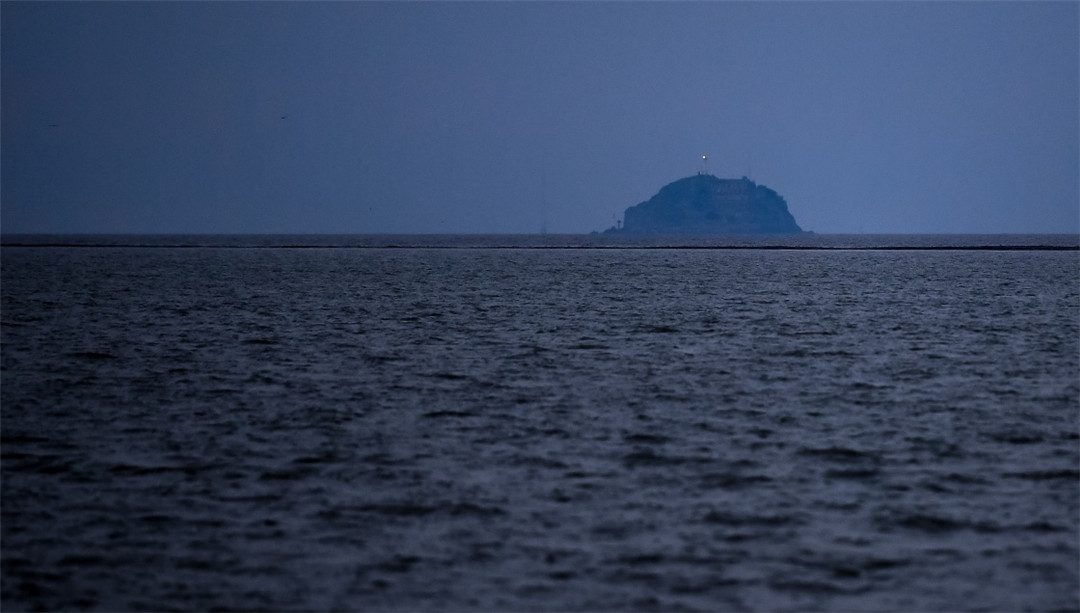 傍晚时分的开山岛,灯塔亮起(8月8日摄)。新华社记者 李响 摄