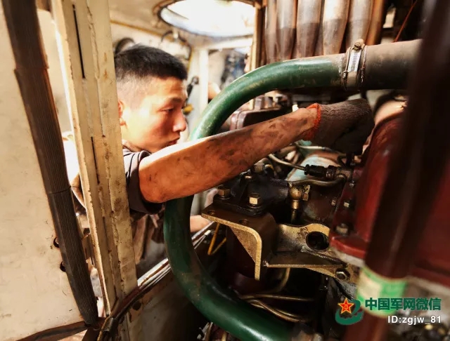 他用布满油污的手,有效地保证了装备的有效率和完好率。