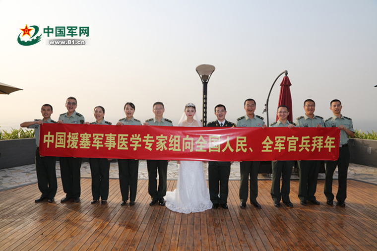 中国援塞军事医学专家组向全国人民、全军官兵拜年。丁一 摄