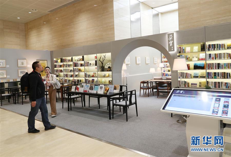 这是进博会新闻中心二楼可供媒体记者阅读休憩的“朵云书房”(11月2日)。新华社记者 方喆 摄