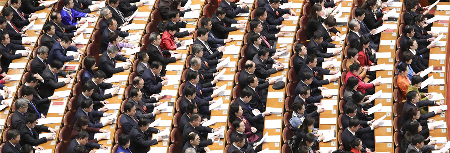 3月5日,第十三届全国人民代表大会第一次会议在北京人民大会堂开幕。这是代表们在认真听会。新华社记者 庞兴雷 摄