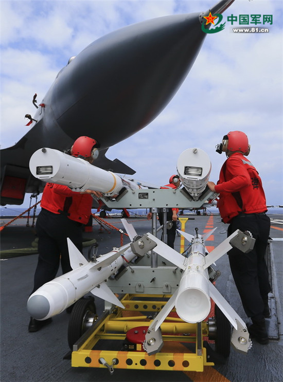 航空保障部门弹药装卸员转运导弹。记者 张雷 摄