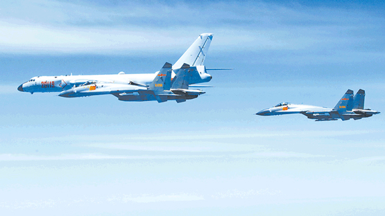 4月26日,空军轰-6K等多型战机执行“绕岛巡航”任务。吴岳鹏摄