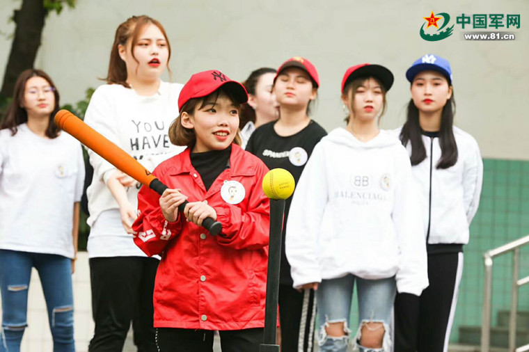 汤星月参加公益活动,学打棒球,充满了青春活力。