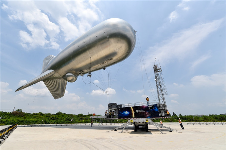 在光启东莞生态园的研发基地,集广域互联网信息传输和光学监控于一体的“云端号”准备升空(2016年7月7日摄)。新华社记者毛思倩 摄