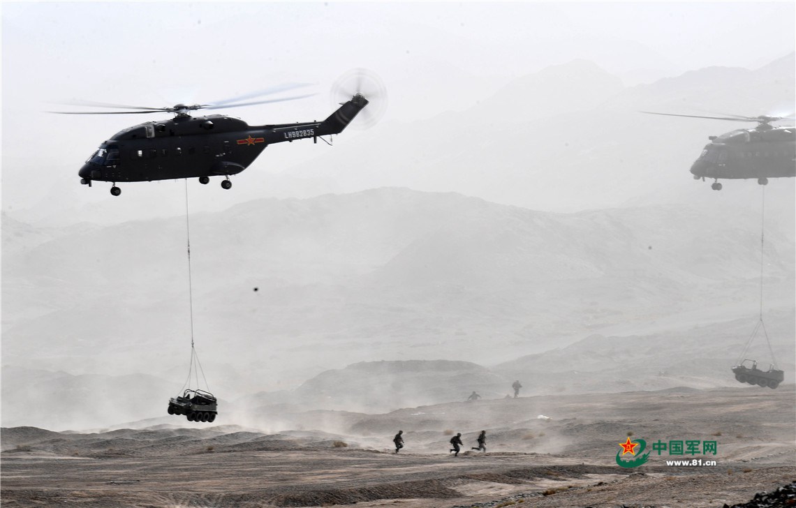 陆军在新疆某训练基地举行练兵备战及转型建设集训。这是某空中突击旅举行实兵实弹演练。张永进 摄