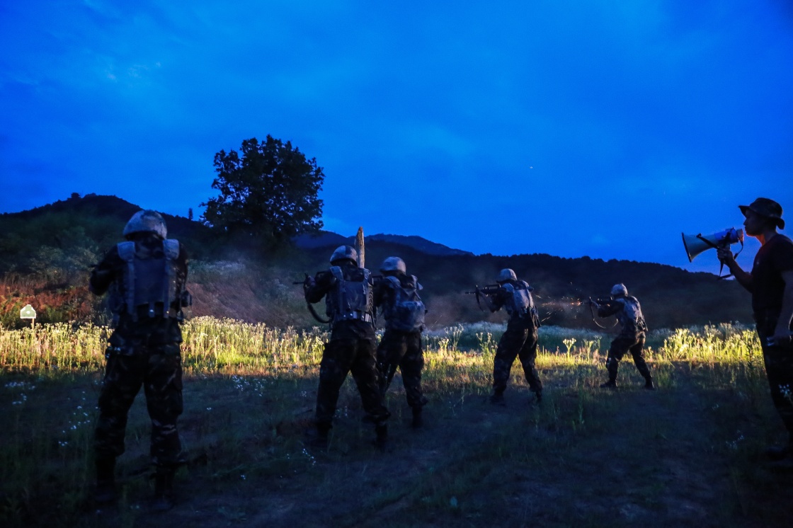 空军“猎人”集训队队员在鄂北某山区进行夜间射击训练(资料照片)。 新华社发(刘汉帝 摄)
