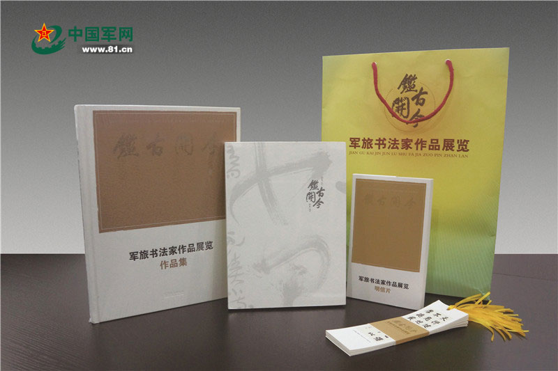 鉴古开今—军旅书法家作品展览文创产品:作品集、笔记本、明信片、书签。