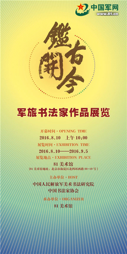 由解放军美术书法研究院、中国书法家协会主办的“鉴古开今——军旅书法家作品展览” 继2016年8月19日在81美术馆举办后,又分别于9月29日、11月24日在石家庄美术馆、济南市美术馆展出,在社会上引起强烈反响。观众人数达6500人次, 新媒体阅读量近60多万人次,7400多人点赞。 新华社、《解放军报》《中国文化报》《中国艺术报》《中国美术报》《中国书画报》《美术报》《中国书法》、中国新闻社、中央电视台军事频道、中央数字电视书画频道、国学频道、中央广播电台等30多家媒体均进行了全面报道,中国军网、人民网、新华网、凤凰网、搜狐网、雅昌艺术网等80多个网站发布、转载、链接。