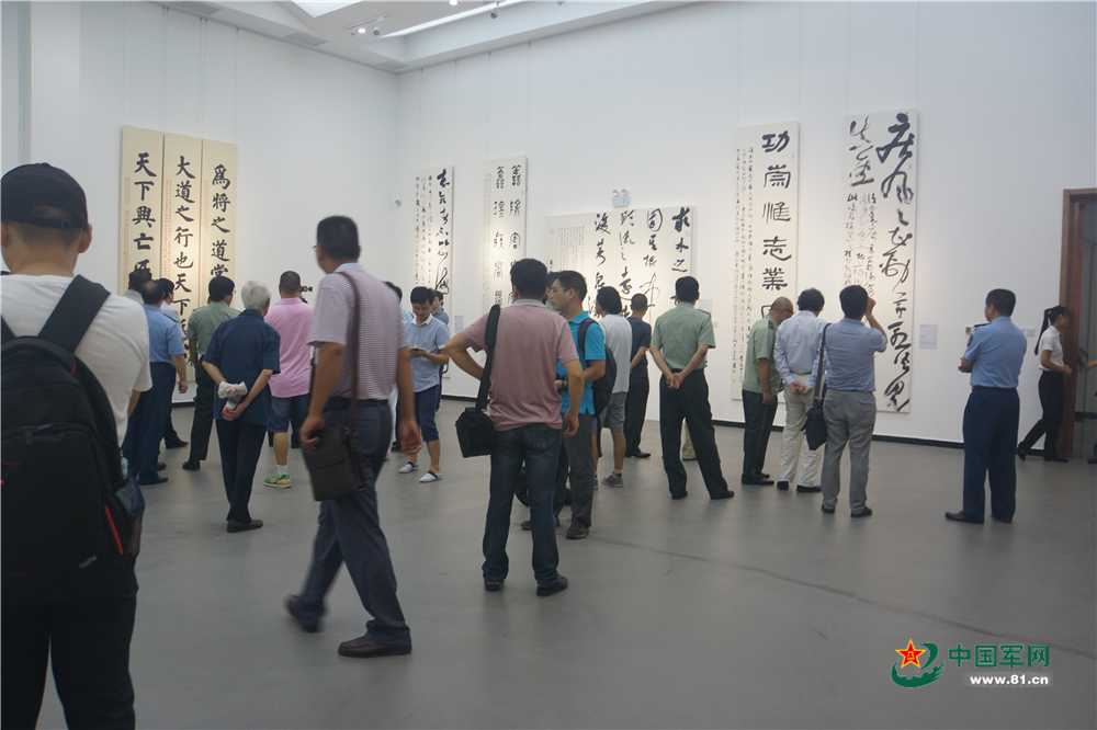 思想性强。此次巡展作品从北京81美术馆展出的147件中精选出67幅进行两地展示。精选后的作品五体俱全,水平整齐,更显精致。书写内容全部来自于古往今来的经典名句,在立意上很好地贴近了强军兴军的伟大实践。中国书法家协会主席苏士澍评价道,内容都选自习主席重要讲话引用的名言诗句,选得准确、贴切,既对应部队官兵的思想政治教育,又很好地传承了中华悠久文化,相辅相成、相得益彰。是内容、形式的完美结合。“书法作品中凝聚了中国古人治国理政之道、为人处世之道和修身养性之道,观者在参观过程中不仅欣赏了书法作品,还咀嚼了前人智慧,是一个艺术和文化相结合的优秀范例。”中国文联书法艺术中心主任刘恒这样评价。