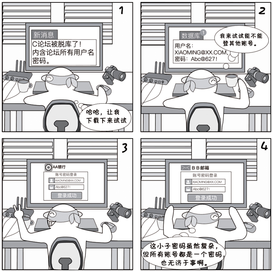 很多人各个网站的用户名、密码相同,这样黑客用被泄露网站的密码登陆其他网站很有可能会成功。每个网站都设置不同的密码可能不现实,那就可以对密码分级管理。