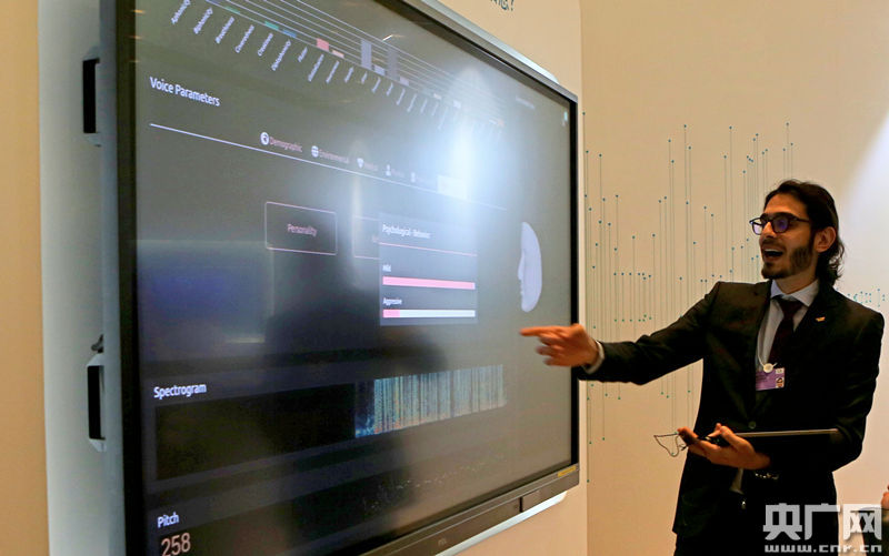 工作人员讲解声音中的信息(央广网记者 王明月 摄)