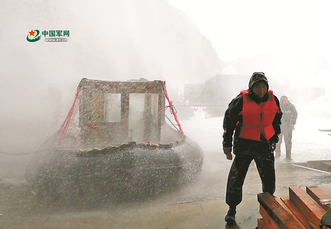 抗灾抢险现场狂风肆虐、巨浪滔天。