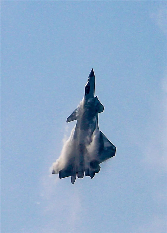 歼-20战机垂直跃升,冲上云霄。刘应华摄