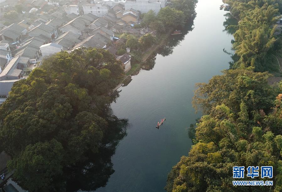 洛江从鹿寨县中渡古镇旁流过(11月4日无人机拍摄)。